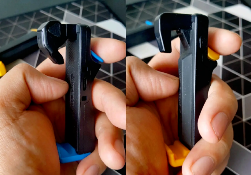 。主体和手柄类似,有“突出”的扳机,和圆润的机身。提升握感和稳定性的同时更加舒适,背面除了电容隔空映射字样外没有多余的线条元素或衔接处。