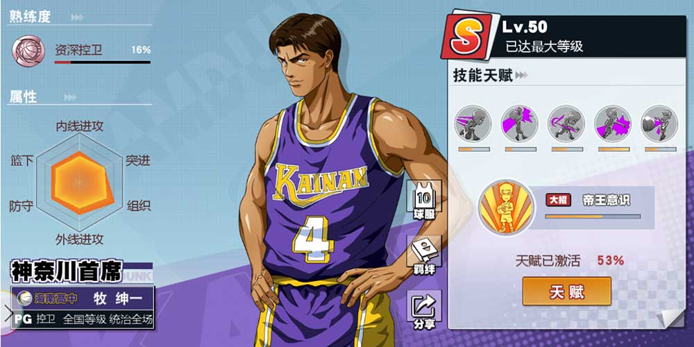 不清楚配置使用的玩家,点击链接查看宏配置教程《灌篮高手》宏配置教程全面加强后,流川枫重新成为t1球员。多样的进攻方式,优秀的面板属性,关键时刻的补篮和抢断入手,湘北mvp在S2重新大放异彩。角色定位流川枫具有全游戏第三综合属性面板(1635),仅次于仙道(1645)和牧(1662),相比仙道和清田,